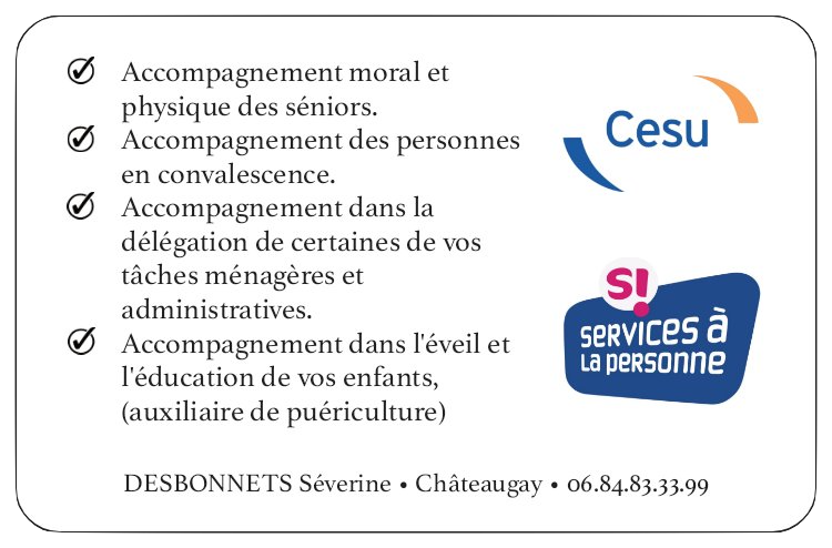 Paiement possible en Chèque Emploi Service Universel pour toutes mes prestations à domicile.